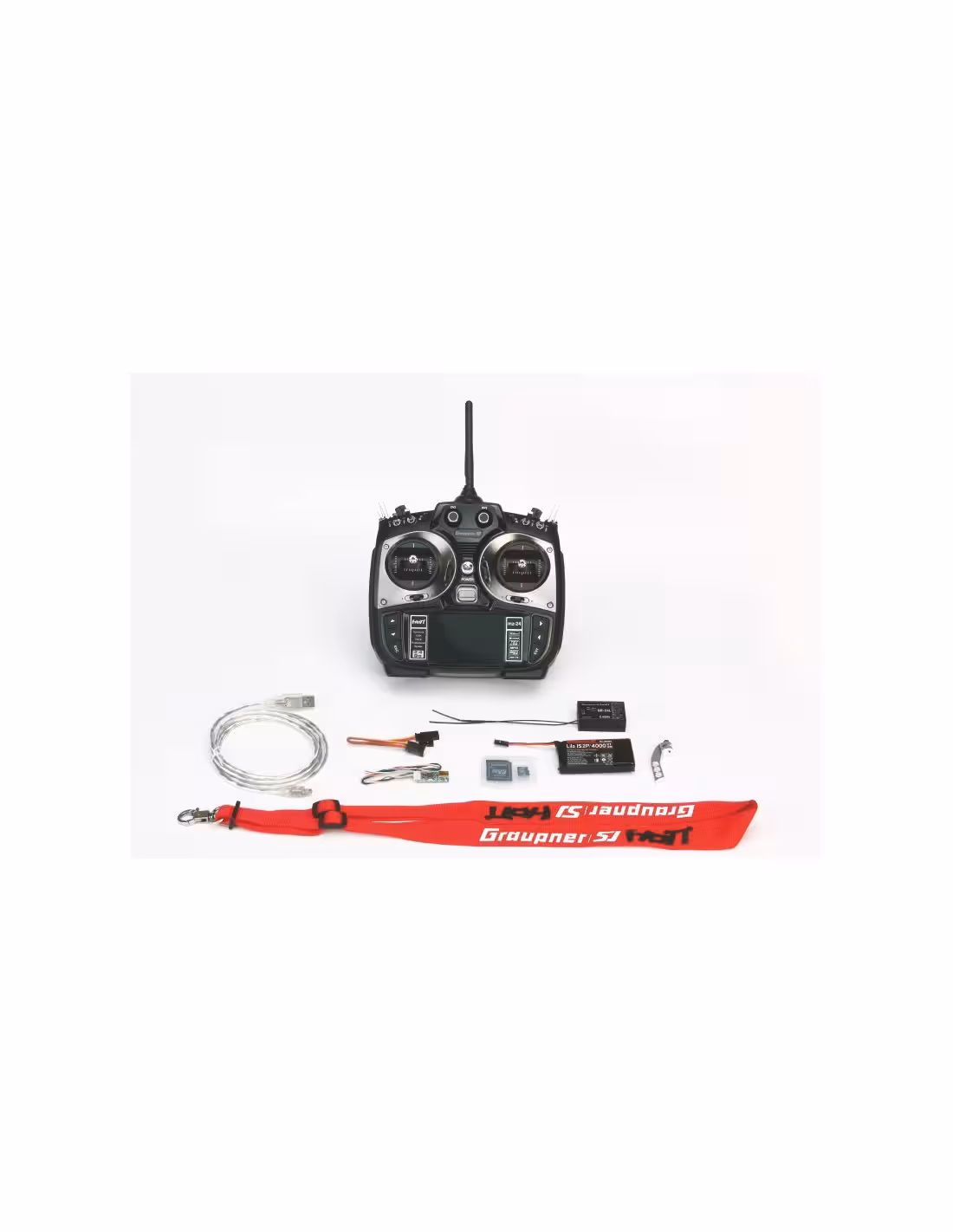 Emetteur MZ-24 avec accu d'émission Lilo de4000 mAh, micro carte SD, Récepteur Gr-24 et GR-12L, Câble USB, Câble USB pour interface PC, Câble adaptateur pour prise USB, Sangle de pilote, coffret aluminium et manuel d'utilisation