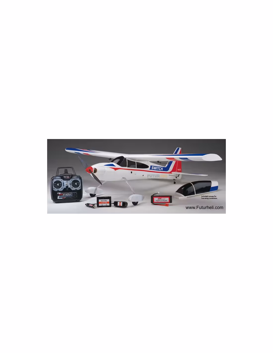 Comme tout pilote vous rêvez de faire de la voltge , mais avant cela il faut apprendre à piloter , le Switch de chez Flyzone est un bel avion 2en 1 qui pourra grace à la position de son aile haute faire un excellent avion de début , et quand vous maitriserez les décollages et atterrisages il suffira de positionner l'aile en bas pour en faire un retdoutable avion de voltige .A l'inverse de ce qu'on peut penser sa grande envergure par rapport au Mini-Switch le rend plu stable pour débuter