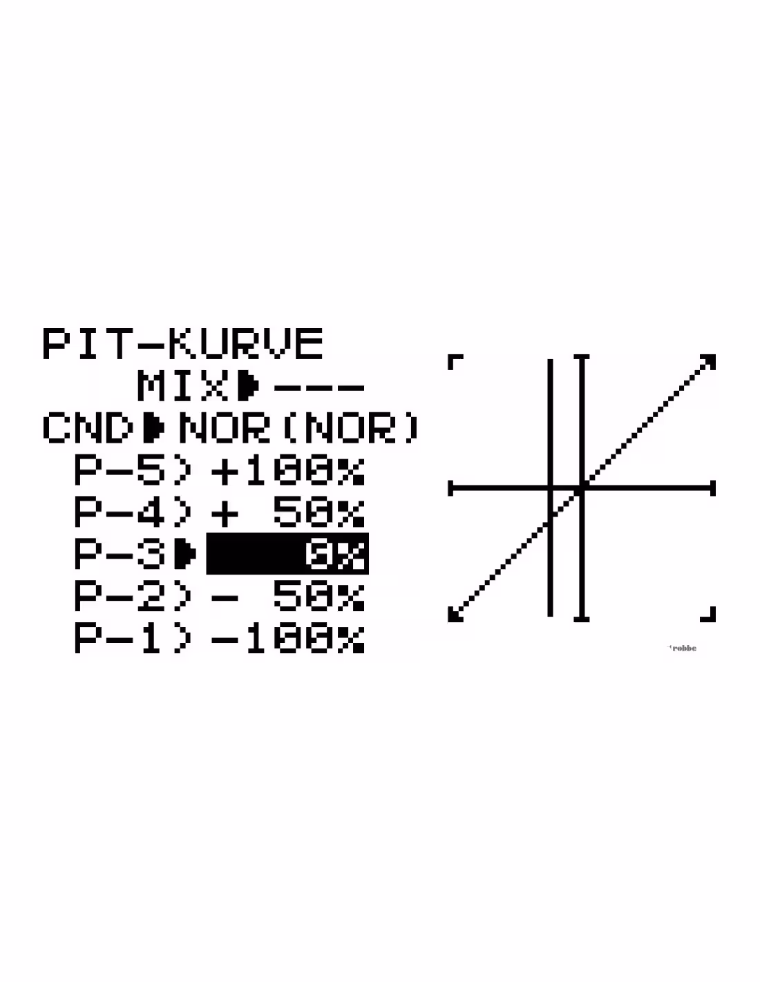 - Courbe de pas à 5 points, normal, priorité au gaz 1, 2, 3 et autorotation
