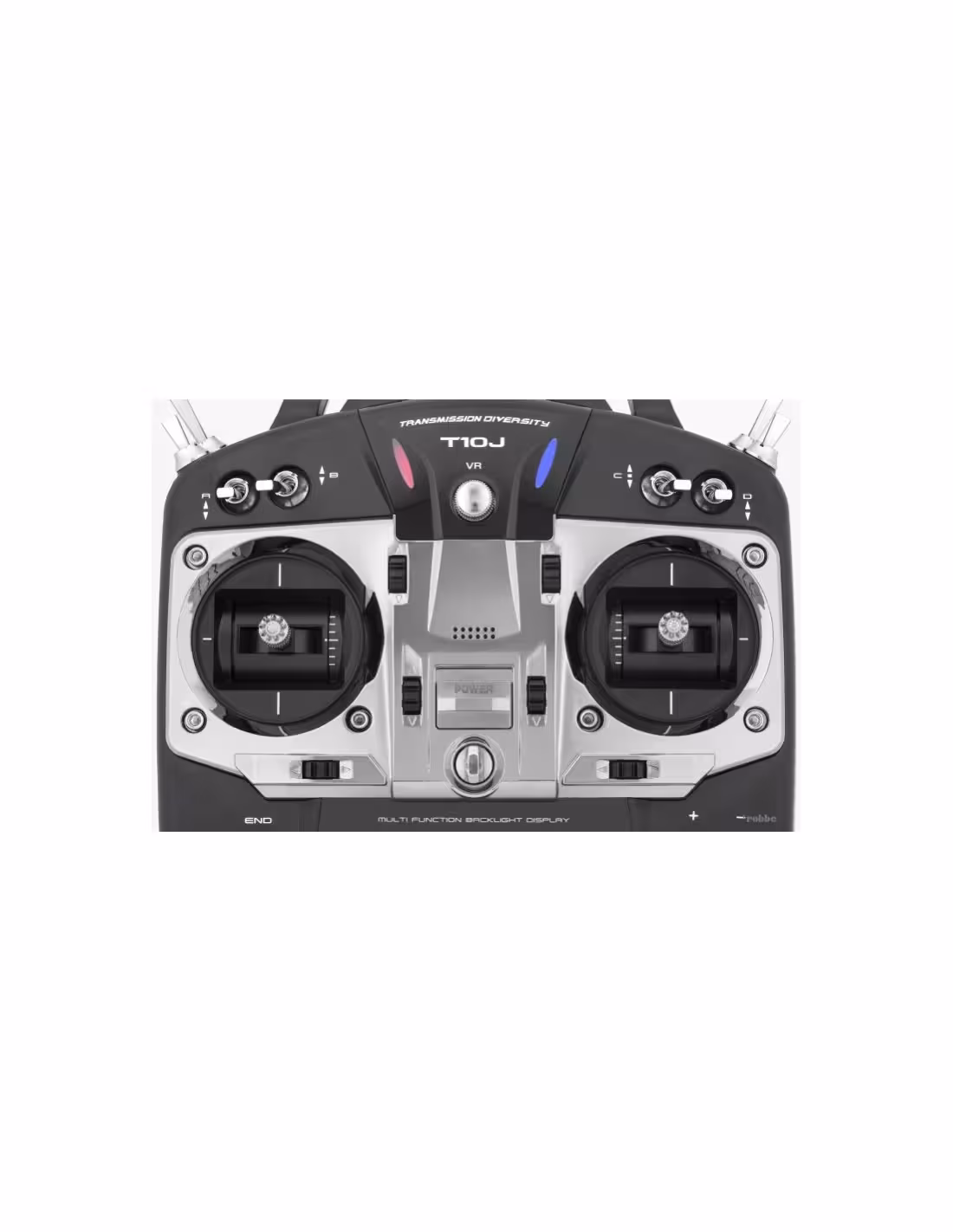 - Emetteur T10J 2,4 GHz T/S-FHSS en MODE 2 (gaz à gauche )
