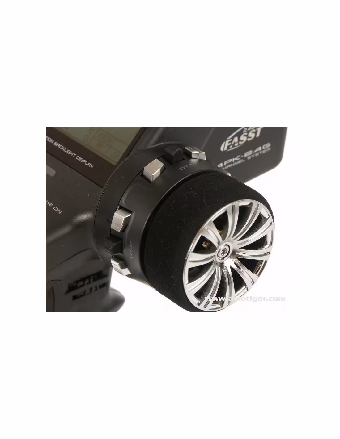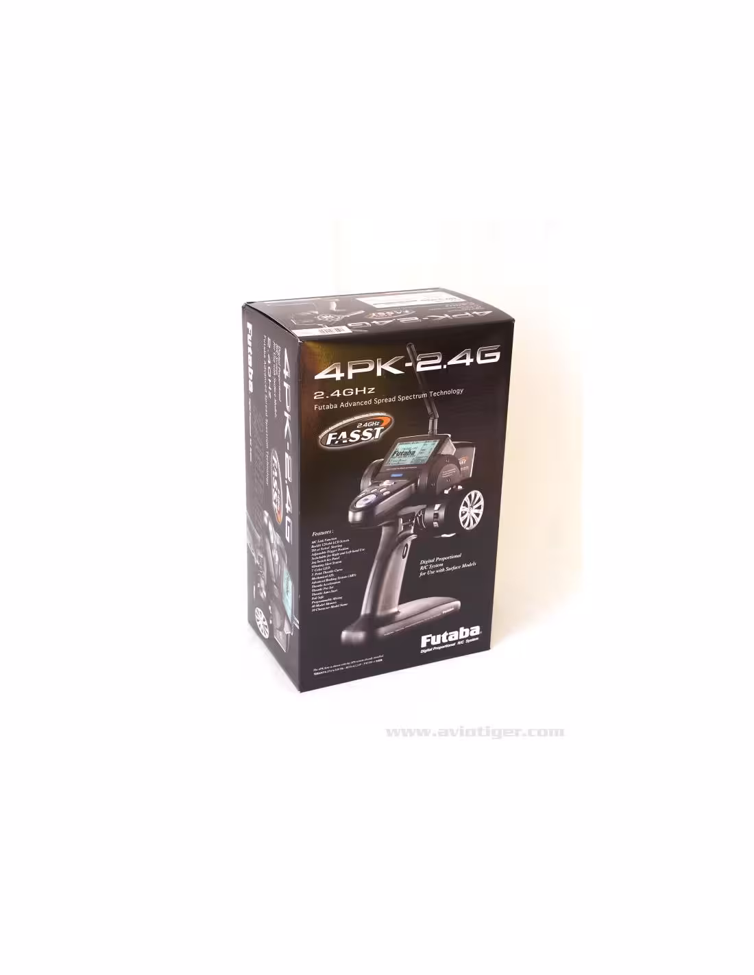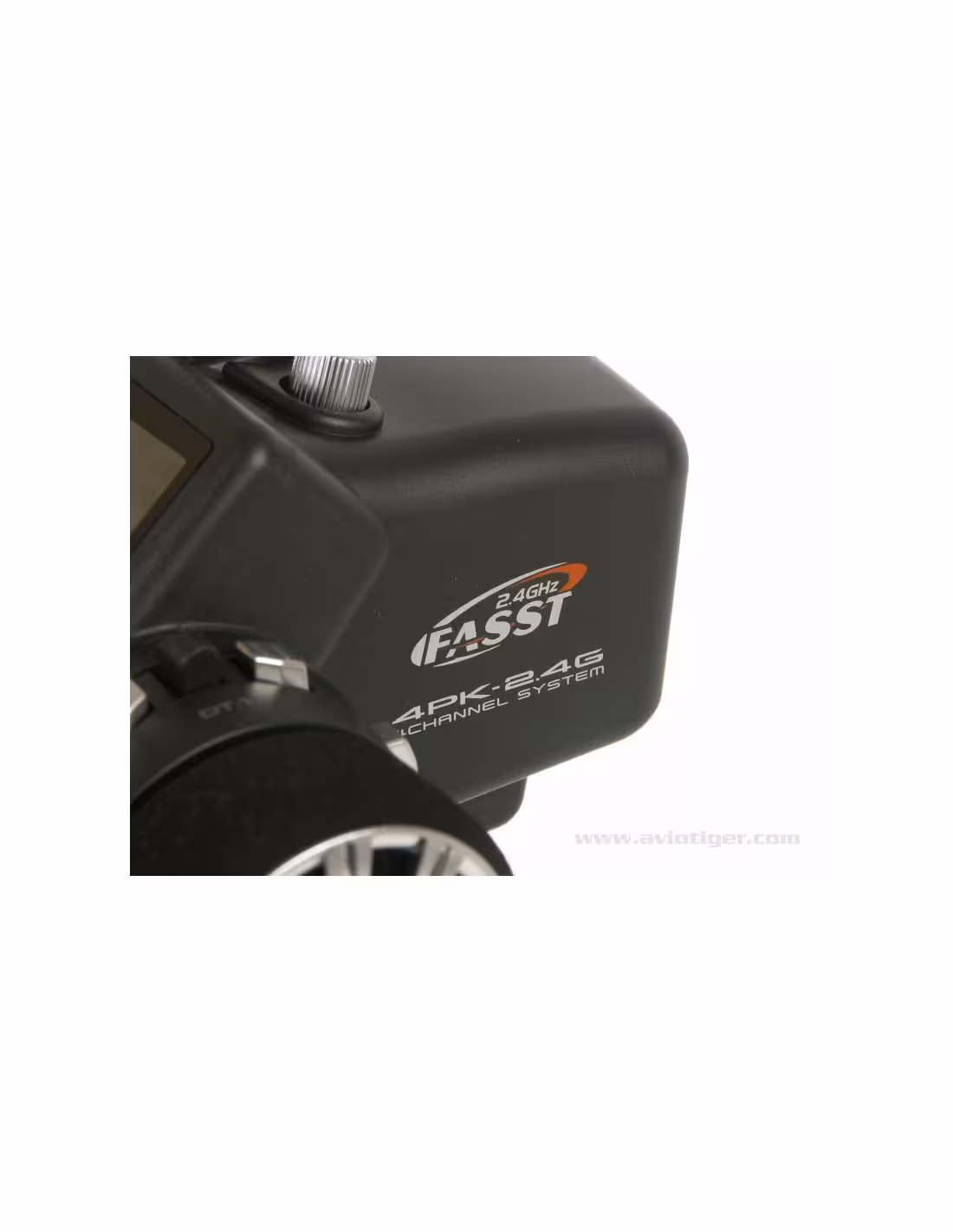 - Comme la 4PKSR a été conçu à la base comme un émetteur utilisant la technologie de transmission 2,4Ghz, il n'y a aucunement besoin d'un module séparé. Un récepteur 2,4Ghz est fournis dans la boite, ce qui fait que vous pouvez immédiatement bénéficier de toute la puissance de la technologie FASST 2,4Ghz FUTABA.