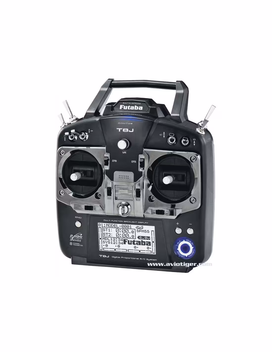 Parmi ces fonctions vous trouverez la technologie FHSS "Frequency Hopping Spread Sprectrum, la possibilité de transférer vos modèles entre 8J en mode wireless, 6 mixages programmables, 5 modes helico, gestion du gyro 3 axes, double antennes interne, 1 écran LCD rétroéclairé, le tout facilement programmable à l'aide d'un joystick et 3 boutons.