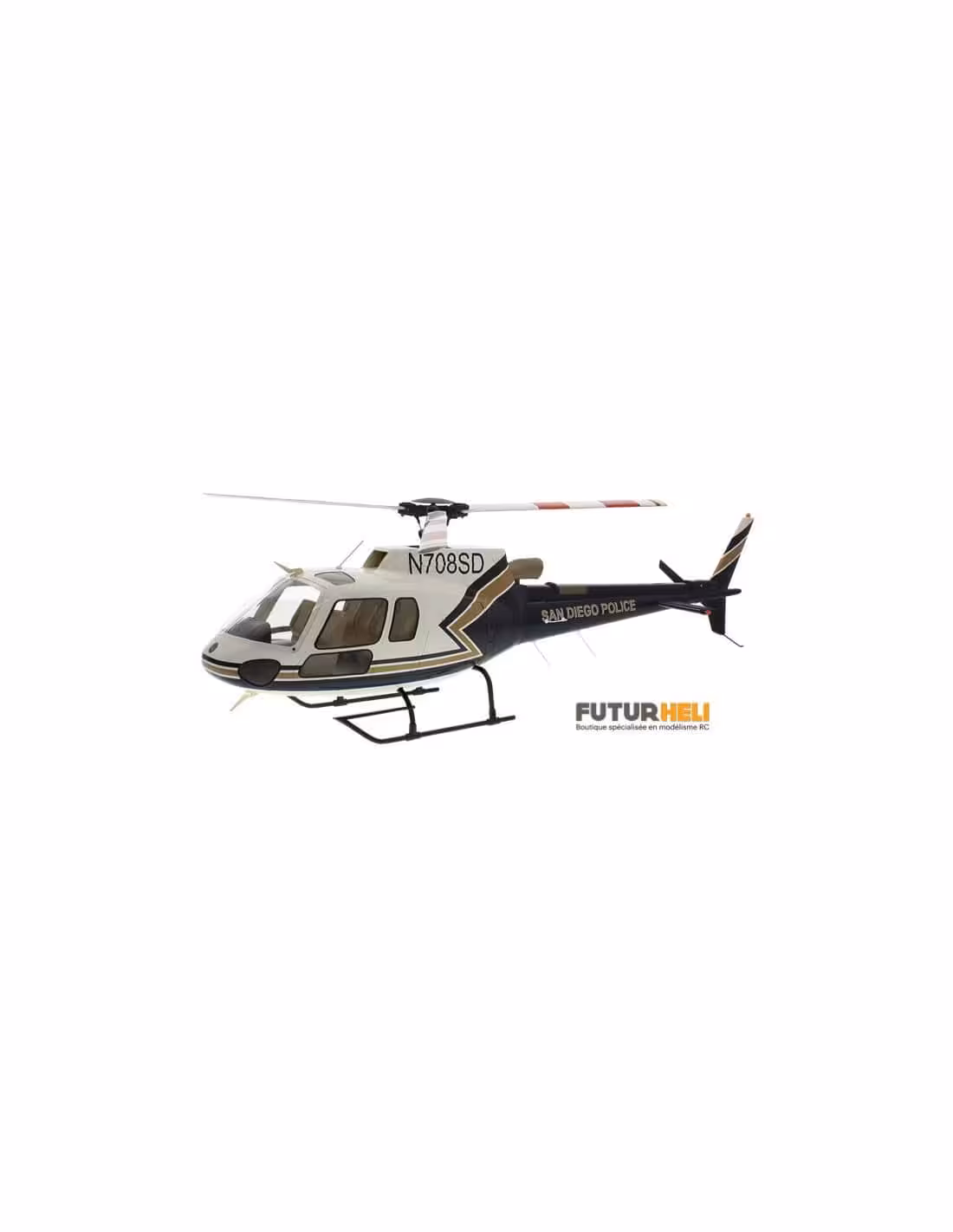 Mauquette Helicoptère Ecureuil AS350 aux couleurs de la police de San Diego livré avec mécanique et tête tripale, pales maquette,Cockpit et kit Lumières .les pales (x 3 ) principales sont livrées ainsi que les pales d'anticouple .