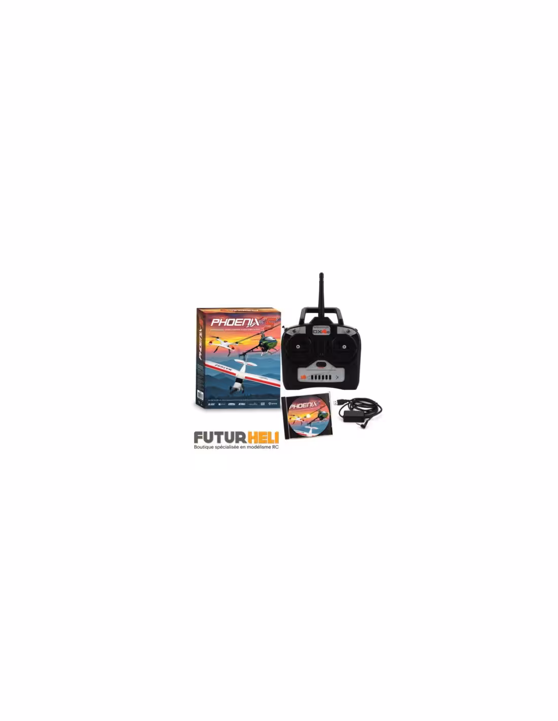 Le simulateur Phoenix V5 est le meilleur simulateur du marché , maintenant livré en version 5. Cette nouvelle version du Phoenix V5.0 intègre les nouveaux modèles avec les nouvelles technologies AS3X et SAFE reproduisant les effets d'aide au pilotage comme sur les vrais. livré avec une radiocommande Spektrum DX4e