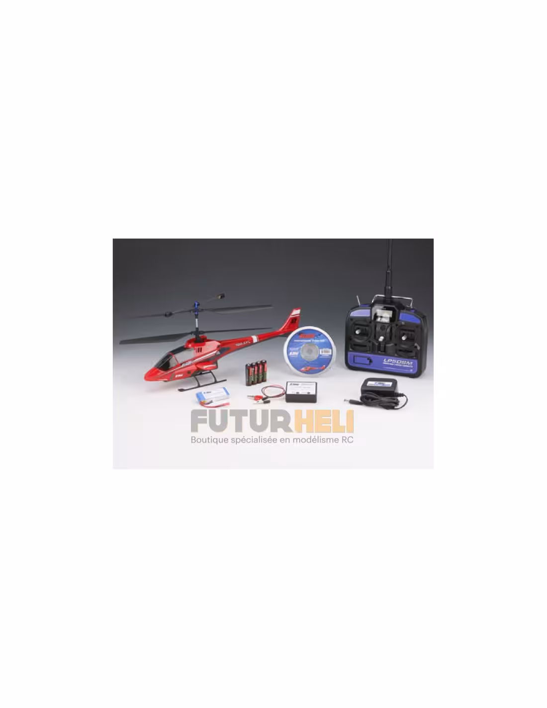 - - Avec l’émetteur 5 voies inclus, la batterie LiPo 2 éléments 800mAh, le chargeur mural et l’adaptateur de charge rapide, vous avez un contrôle complet sur le vol stationnaire ou en translation pour une durée de 10–15 minutes par charge .