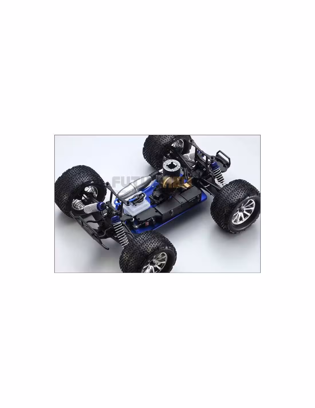 permettant d’optimiser les performances du châssis selon les pistes rencontrées; d'axes de roues ultra rigides de 6mm et écrous de roues en aluminium; de pneus picots pourvues de mousses.