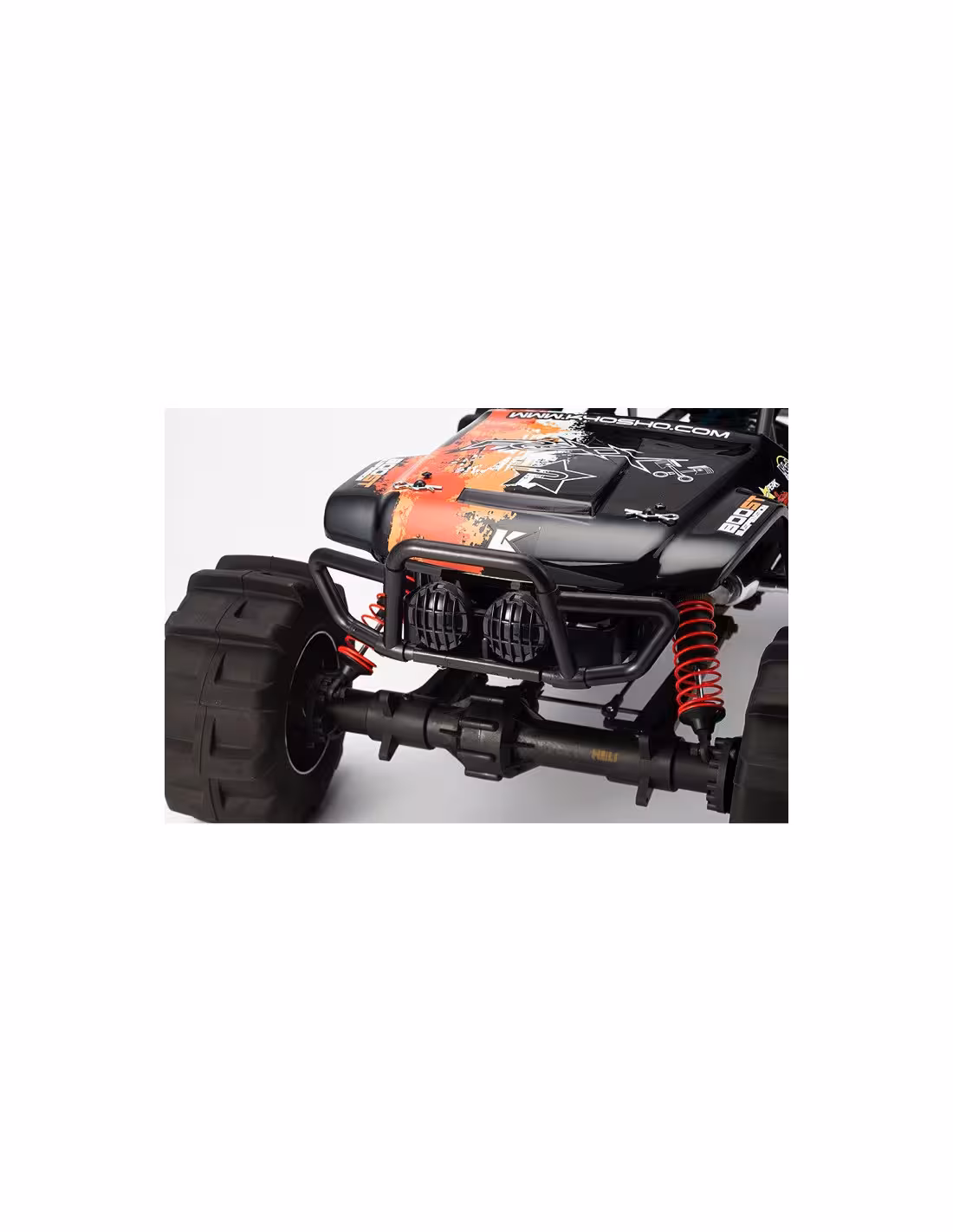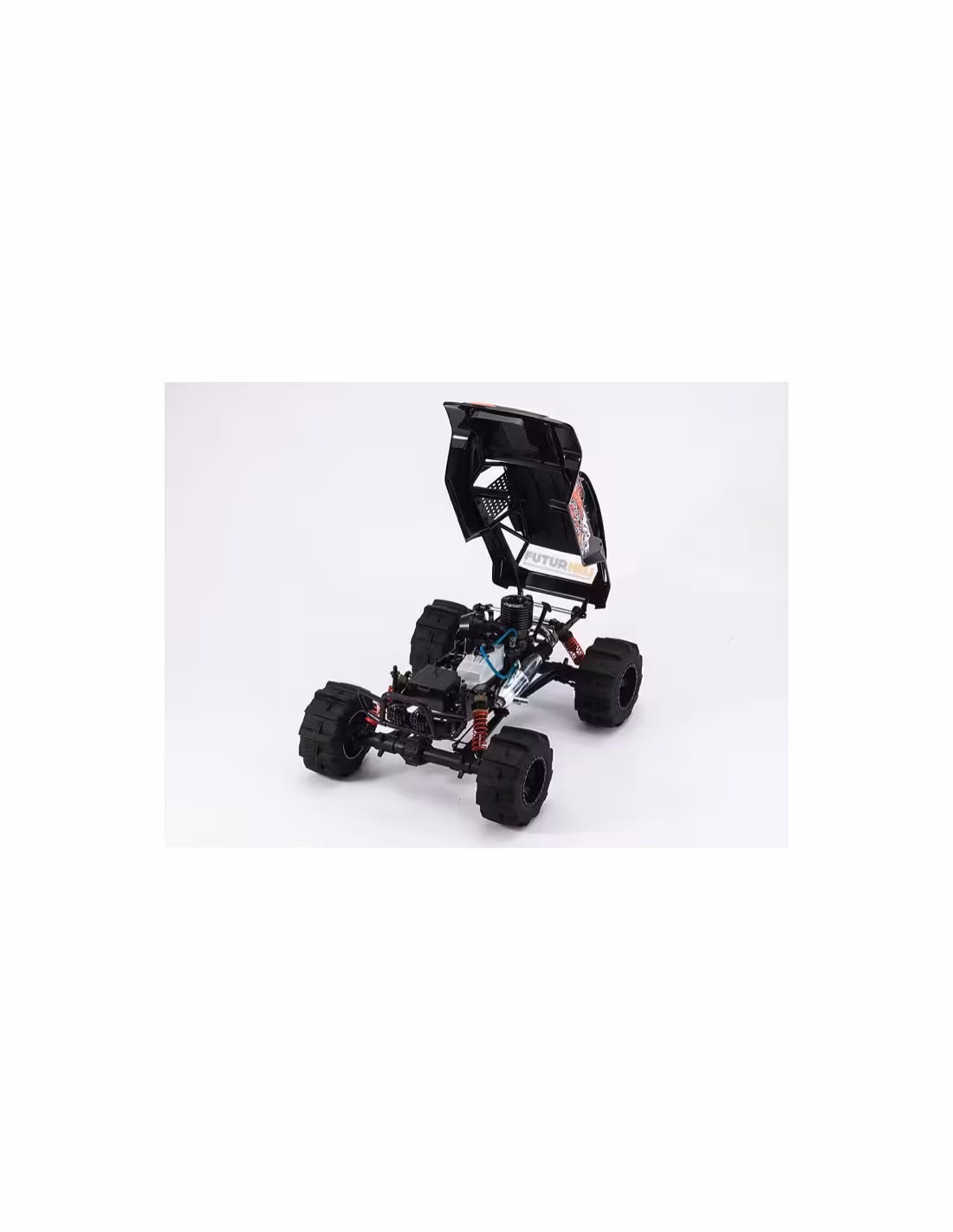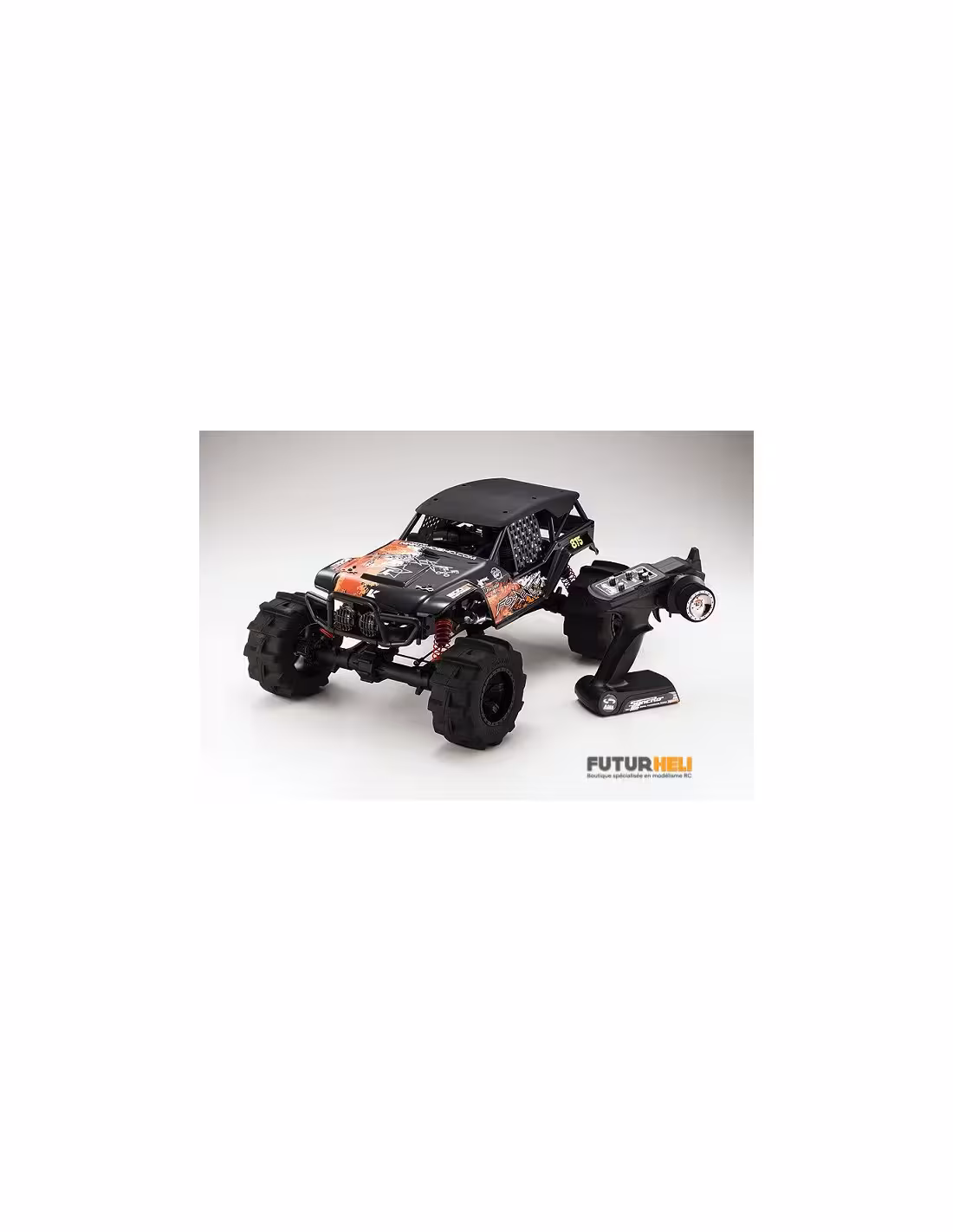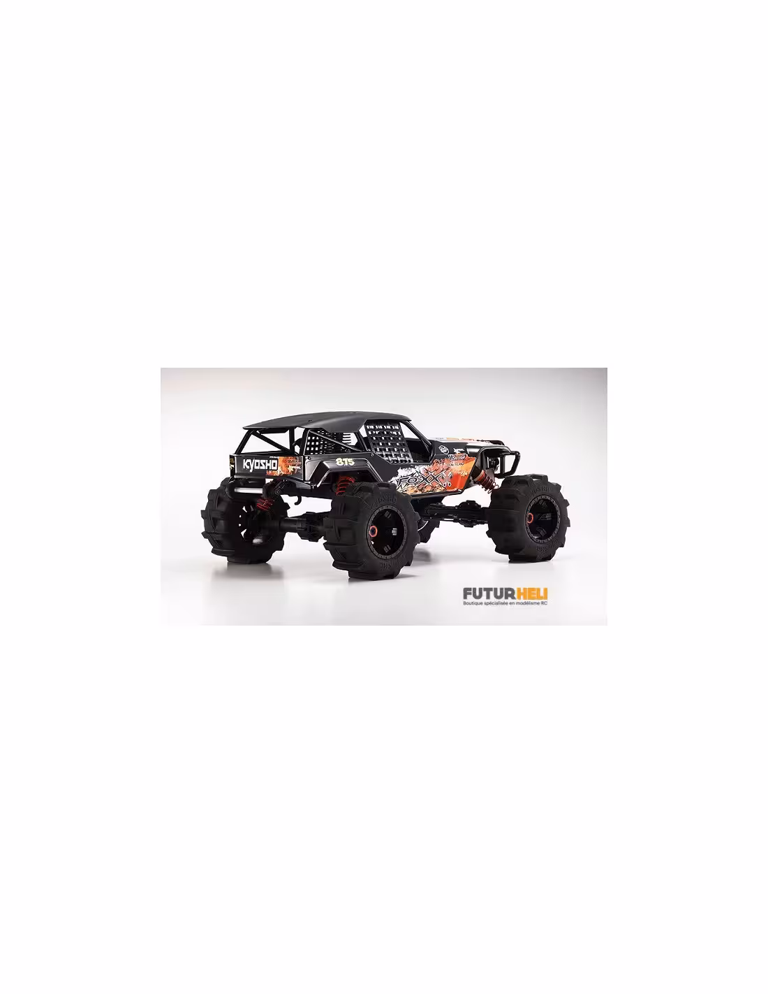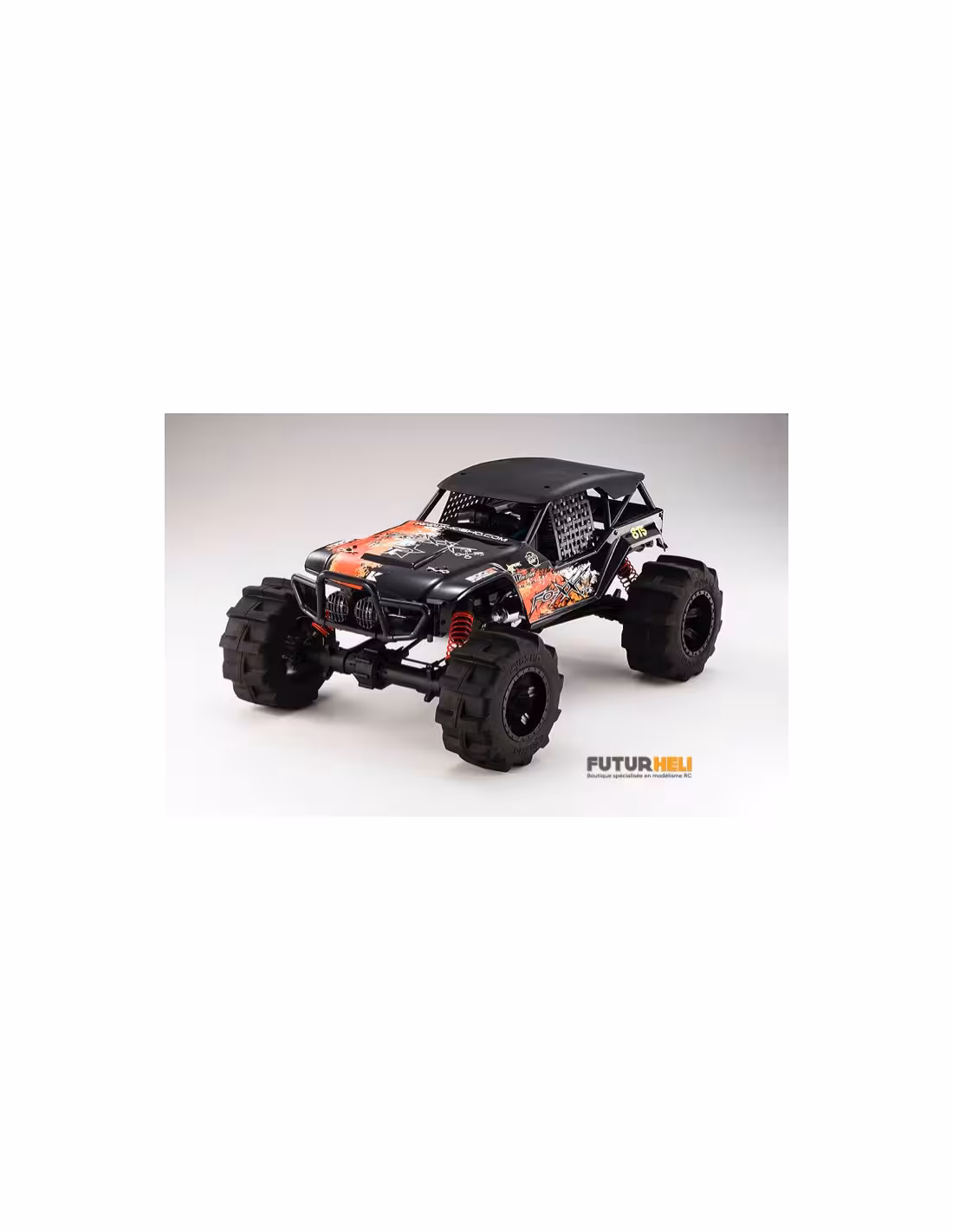 - Le FO-XX utilse une transmission à 4 roues motrices avec deux ponts rigides. Cette solution technique permet de passer un maximum de puissance sans risques de rupture.La carrosserie inspirée de la série "Formula Off-Road", représente un truck avec arceau cage qui assure une grande protection en cas de retournement.La transmission à 3 vitesses permet au moteur KE25 d'exprimer toute sa puissance en toutes circonstances. Il est équipé d'une ligne d'échappement polie, du plus bel effet.Les servos KS203 qui équipent le FO-XX sont waterproof (étanches) vous permettant d'évoluer sur des terrains détrempés.La suspsension est confiée à des amortisseurs grand diamètre pour un maximum d'efficacité.Le FO-XX inaugure un nouveau type de pneus spécialement conçu pour ce véhicule pour un maximum de motricité sur les terrains souples.Toutes les options de la gamme MAD-FORCE sont compatibles avec le FO-XX.